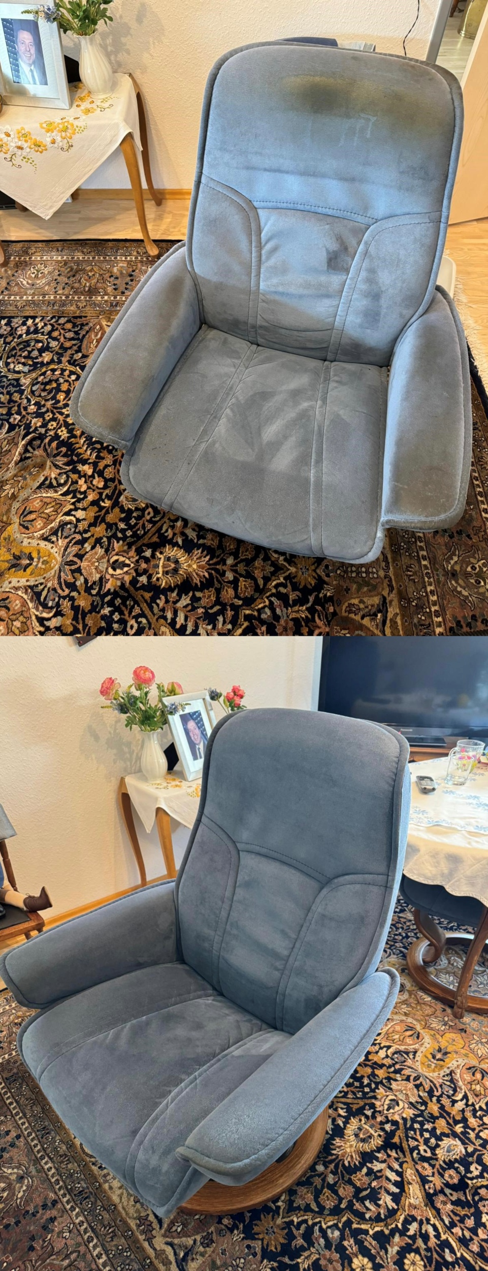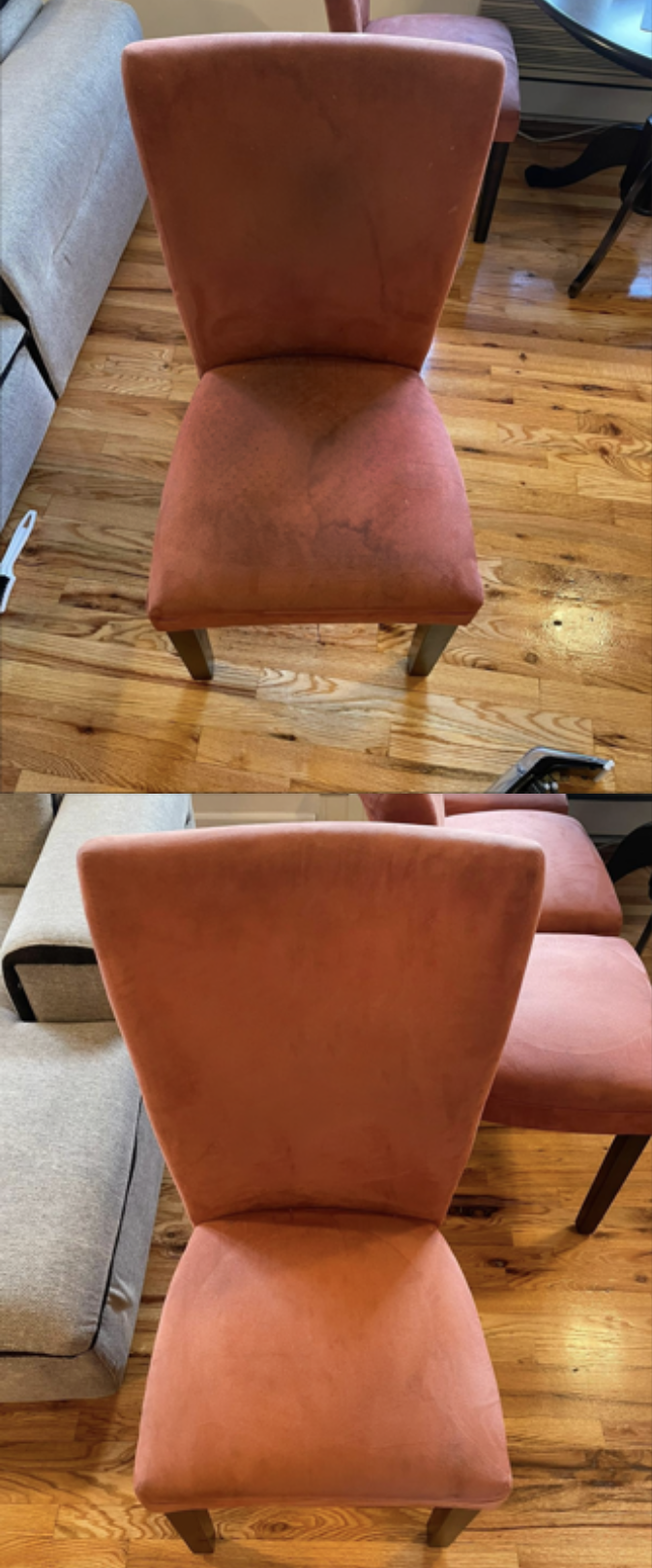 Beschreibung: Sowohl zu Hause als auch im Büro verdienen Ihre Stühle die beste Pflege. Unsere umfassende Reinigung von Wohnzimmer- und Bürostühlen entfernt Schmutz, Flecken und Gerüche, sodass Sie sich in einer frischen und hygienischen Umgebung wohl fühlen können.